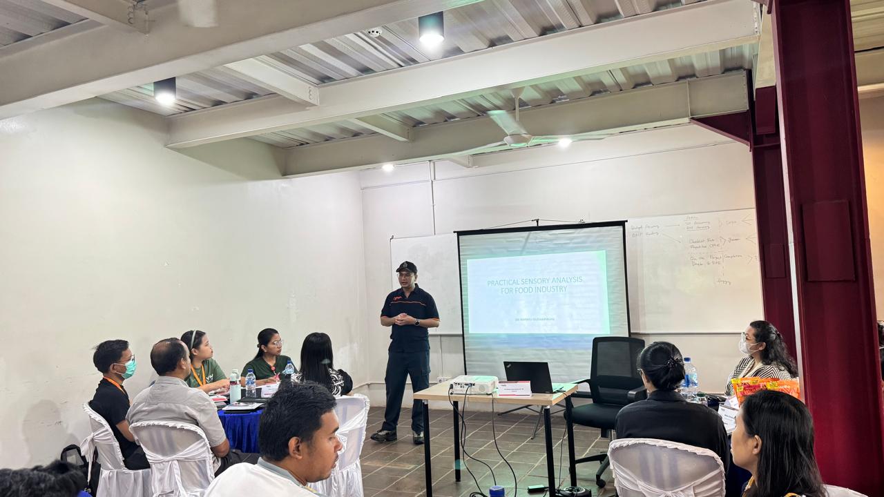 Pelatihan Sensory Analysis bertujuan untuk membekali peserta dengan pengetahuan dan keterampilan dalam melakukan analisis sensori secara sistematis dan objektif terhadap produk, khususnya produk pangan dan minuman. Pelatihan ini mencakup dasar-dasar ilmu sensori, metode pengujian sensori, pengelolaan panelis, analisis data, serta penerapan hasil uji sensori untuk pengembangan produk dan pengendalian mutu.